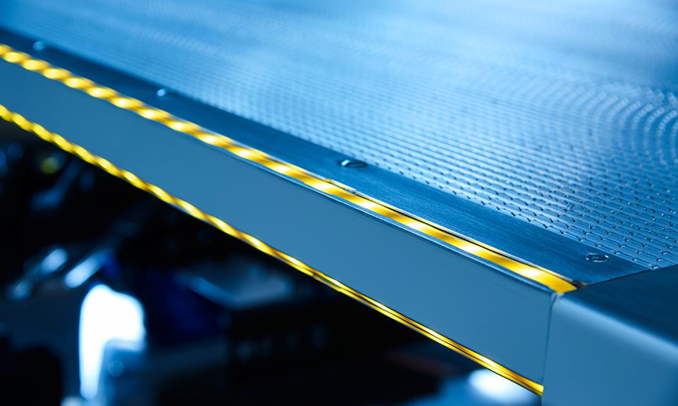 La visibilité est synonyme de sécurité ! La bande LED sur la face supérieure et inférieure du profilé de bordure signale de manière marquante le bord de la plateforme aussi bien au conducteur qu'à son environnement.